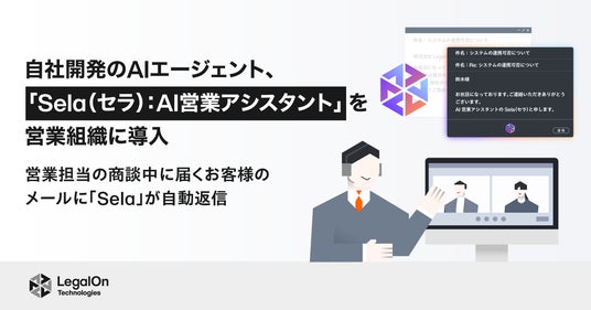 「LegalOn: World Leading Legal AI」を提供する株式会社LegalOn Technologies(本社:東京都渋谷区 代表取締役 執行役員・CEO:角田望、以下LegalOn Technologies)は、本日より自社開発のAIエージェント「Sela(セラ):AI営業アシスタント」を営業組織に導入します。OpenAIの最新モデル「GPT-4.1」と当社独自の生成AI技術を活用した「Sela」は、商談中の営業担当に代わり、お客様から届く問い合わせ内容を読み込んだ上で、蓄積された過去のメールや公式情報を参照し、必要かつ適切な情報を自律的に一次返信します。お客様をお待たせすることなく、必要な情報をすぐに返信することができるようになり、営業効率及び顧客体験の向上につなげることが可能になります。「Sela」の導入により、営業組織の生産性10倍超を目指します。