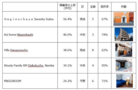 <参考>大阪市内に当社が管理する宿泊施設の中で稼働率が大きい上位5施設