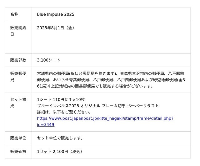 3 オリジナル フレーム切手「Blue Impulse 2025」の概要