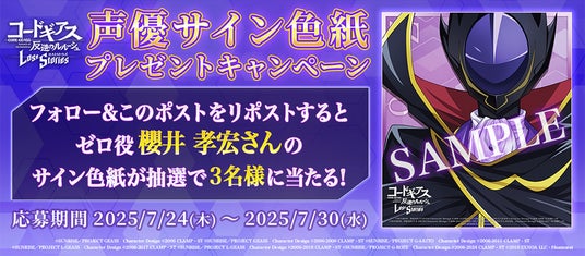 ★4スザク[仮面に正義宿して]の登場を記念し、ゼロ役 櫻井孝宏さんのサイン色紙キャンペーンを開催!