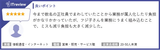 詳細・投稿ページ:https://www.itreview.jp/products/fujiko-san/review_campaign_lps/R-4AcCYNYuXDxWI-XOPHtA