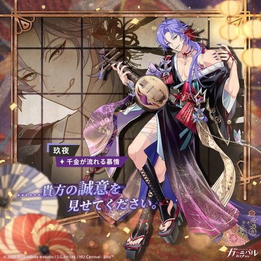 超人気BLスマホゲーム『NU: カーニバル - Bliss』が本日(24日)より、期間限定イベント「花散りて夢燃ゆる」の実施を開放しました。本イベントでは玖夜、エンテン、そしてレイは華伶として「華伶遊船(かれいゆうせん)」の演目に参加し、町中の様々な催し物に挑みながら、互いに競い合い、賞賛と栄誉の証である飾り紐を手に入れようとします。しかし、賑わいに満ちた宴の裏で、彼らは奇妙な夢に囚われていきます──霞のように儚くも美しいその姿で、一体何を伝えようとしているのでしょうか?