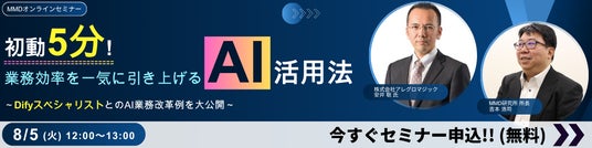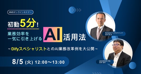 本セミナーでは、Difyを活用した調査設計や回答分析、営業資料の自動生成や問い合わせ対応の自動化など、リサーチ業務を含めた業務全般に対するAI活用事例をご紹介します。現場の工夫や課題にも触れながら、実際の導入プロセスや成果をぜひご確認ください。