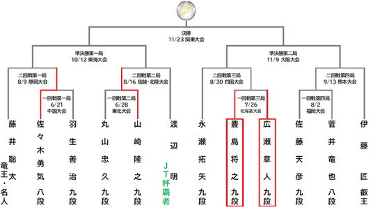 両者の対戦成績は広瀬九段の15勝14敗。「JT杯」では過去2回対戦しており、豊島九段が2勝している。戦型を見ると、角換わりが14局、矢倉4局、雁木3局、相掛かり3局、横歩取り2局、四間飛車穴熊2局、力戦相居飛車1局となっている。近年の傾向からすると、広瀬九段が先手のときは相掛かりが有力で、豊島九段が先手の場合は、角換わり、矢倉、相掛かり、雁木のどれもありそうだ。直近5戦は広瀬九段が5連勝しており、豊島九段としては借りを返したいところだ。これら5戦を振り返ると、序盤で豊島九段が趣向を凝らしていた。今回の対戦でも、豊島九段が工夫した戦型を選ぶのかどうかが注目される。広瀬九段は、昨年の「JT杯」では準決勝で藤井聡太竜王・名人を破ったものの、決勝戦で渡辺明九段(当時)に敗れて2度目の準優勝。悲願の「JT杯」初優勝に向けて、地元北海道での対局から再始動となる。豊島九段は昨年度に意外な不振に陥り、年度成績で初めて負け越してしまった。それでも、昨年12月から今年7月上旬までで8勝6敗と持ち直しており、優勝経験のある「JT杯」で反撃ののろしをあげたい。