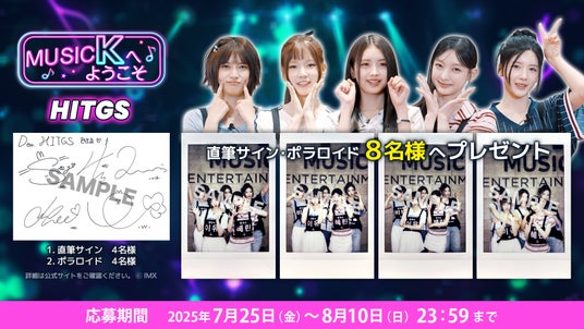 「Music Kへようこそ!」最新話更新を記念して、HITGSの直筆サインとポラロイドが抽選で8名様に当たる豪華プレゼント企画を本日18時より実施。Music Kの公式X、および公式サイトをご確認のうえ詳細をお待ちください。