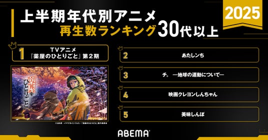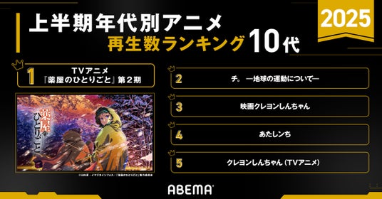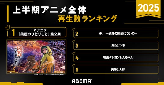 新しい未来のテレビ「ABEMA」は、2025年上半期に放送、配信したアニメジャンル作品の視聴データをもとにした「アベマアニメ2025年上半期再生数ランキング」を発表いたします。