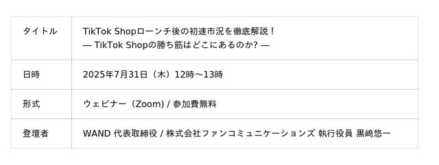 セミナー参加申込リンク:https://thewand.jp/tiktok_shop_seminar