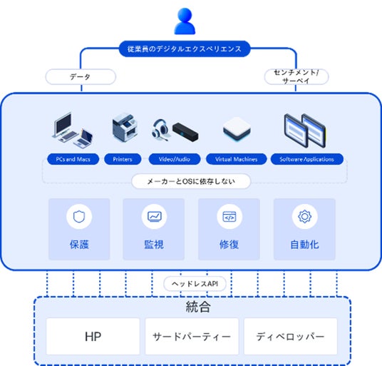 HPは、「AIを搭載したデバイスの創造」、「ポートフォリオ全体でより良いエクスペリエンスの提供」、「顧客データの有効活用」、「CIOを支援する適切なツールの提供」の4つの柱のもと「Future of Work」を推進しています。「HP Workforce Experience Platform」は、多様な環境で働く従業員のデジタルエクスペリエンスをAIを活用して継続的に改善し、生産性向上とIT部門の業務効率化を支援します。