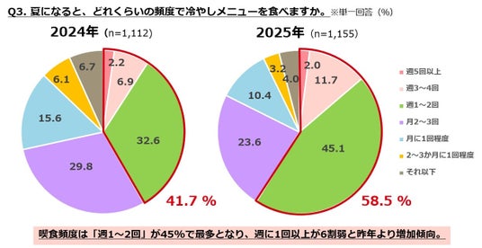 今回の調査から、気温30℃が冷やしメニューを食べたくなる明確なスイッチであること、そして気候の変化で6割以上の方食べ方が変化しているという、2つの実態が明らかになりました。