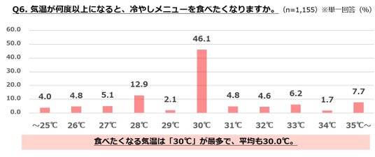 ・食べたくなる気温は「30℃」が最多で、平均も30.0℃。