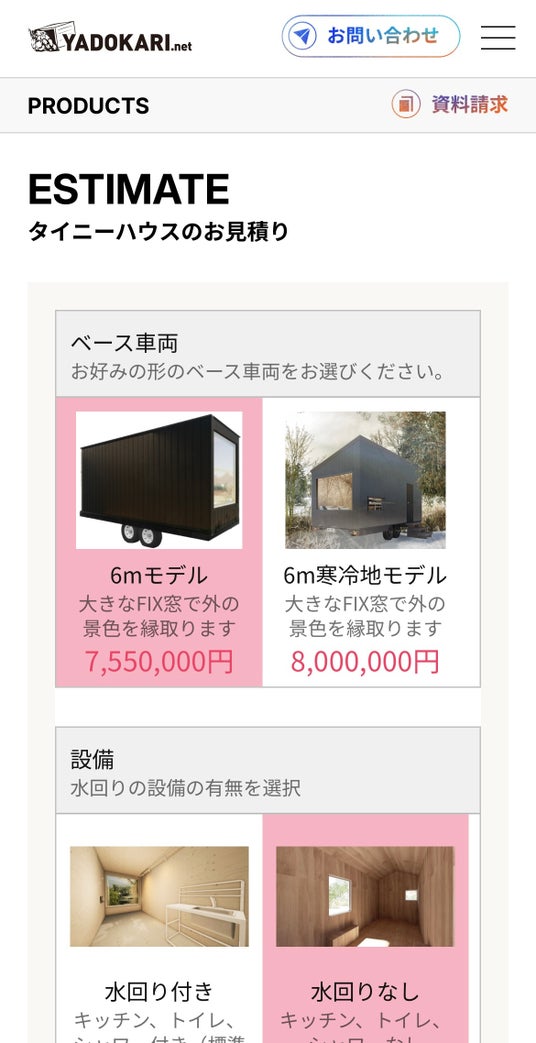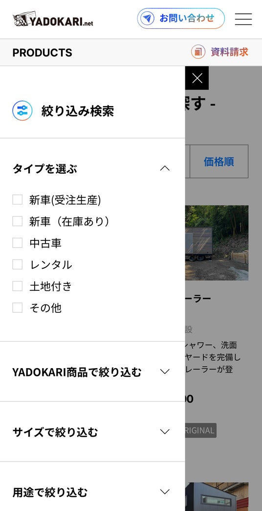 1. 「TINY HOUSE ORCHESTRA」と統合、自社プロダクト・活用事例・イベント情報を一元化タイニーハウスの販売・レンタル・中古情報を扱っていた「TINY HOUSE ORCHESTRA」を「YADOKARI.net」に統合。各プロダクトには商品の紹介だけでなく、自動見積もり機能を搭載し、購入検討をよりスムーズに。また、住まいや宿泊施設での活用事例、展示会やイベントの最新情報も充実し、リアルな検討や体験の機会も拡大しています。