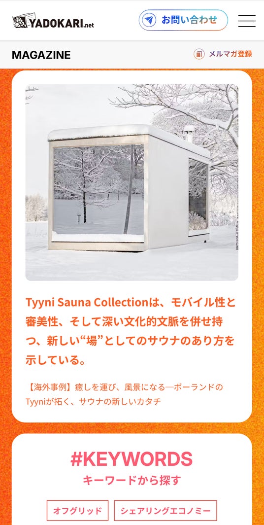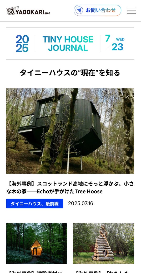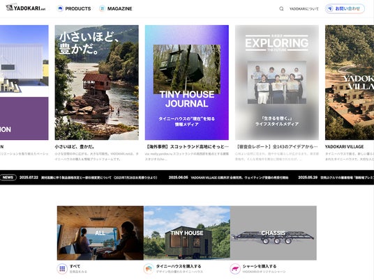 YADOKARI株式会社(本社:神奈川県横浜市、代表取締役:上杉勢太・さわだいっせい)は、2025年7月25日、自社が運営するオウンドメディア「YADOKARI.net」を全面リニューアルいたしました。これまでタイニーハウスの専門サイトとして自社プロダクト紹介や中古・レンタル情報を発信してきた「TINY HOUSE ORCHESTRA」と統合し、「YADOKARI.net」は“タイニーハウスの購入&情報プラットフォーム”として生まれ変わります。