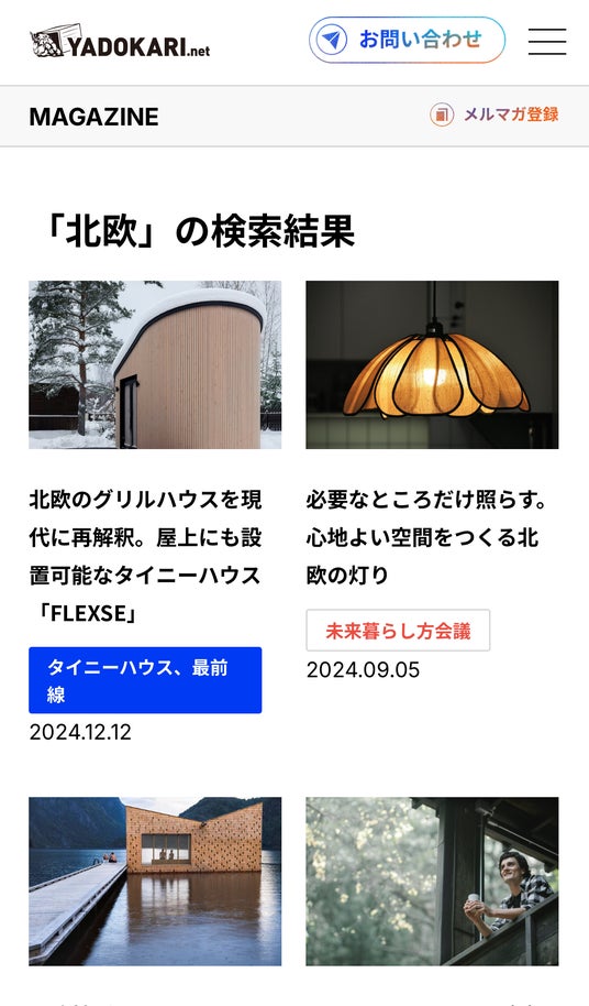 YADOKARIがこれまで発信してきた約4,000本の記事を、「TINY HOUSE JOURNAL」「EXPLORING THE FUTURE~未来探求~」の2つのカテゴリーに分類し、目的や関心に応じて情報へアクセスしやすくなりました。