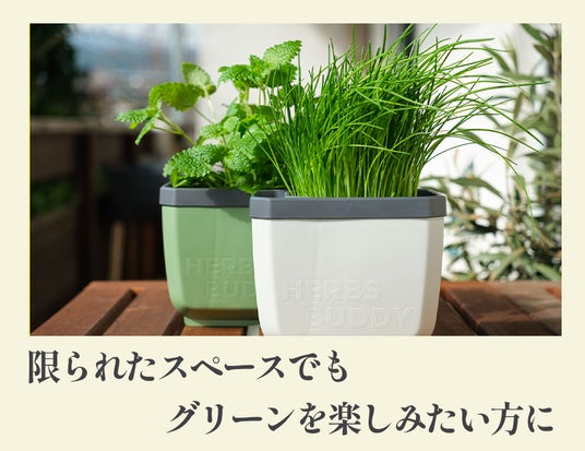 「HERBS BUDDY」は、忙しい方でも気軽にグリーンライフを楽しめる新発想のプランターです。