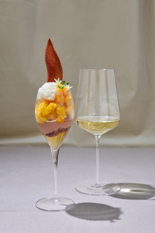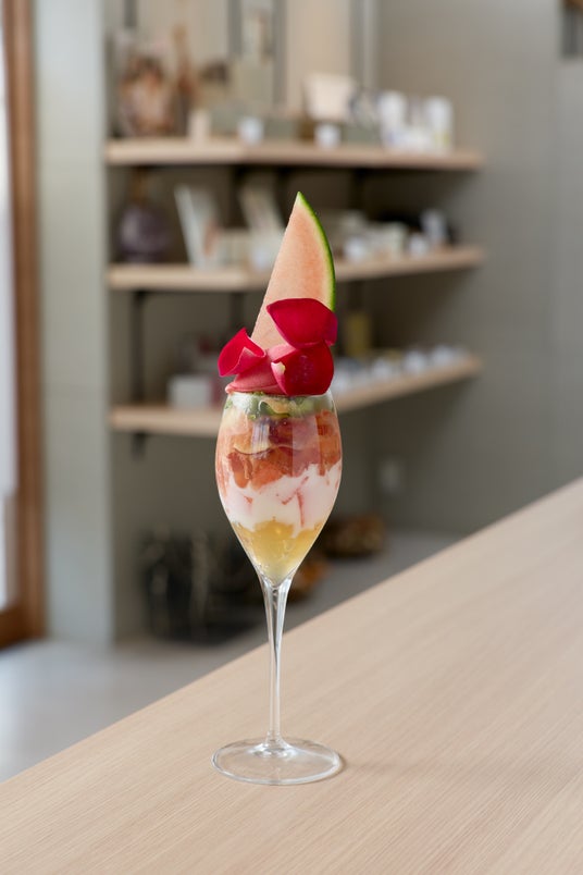 また夜の部では、「アルコールと楽しむ新体験パフェ」をテーマに、前半・後半で各1店舗が参加し、各店が考案した3種類の大人の夜パフェを提供。EMMEのフランスのデザートをイメージした「桃とバジルのメルバなパフェ」や、Typicaの夏を代表する和野菜2種を詰め込んだ「茄子と茗荷のみたらしパフェ」など、ワインやシャンパンなどアルコールとのペアリングを楽しむ、洗練された夜限定メニューが楽しめます。