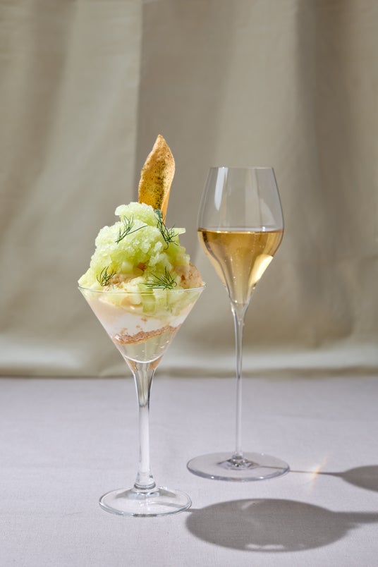 メロンとハーブの大人パフェ/2,050円旬のフレッシュメロンとコアントローを効かせたバニラアイス、フロマージュブランの爽やかなムースとシャルトリューズ(ハーブのリキュール)の大人なジュレを忍ばせました。ココナッツのアイスとメロンのシャーベット、ハーブのディルで暑い夜に爽やかな1杯を。