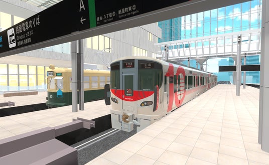 変更点1.リアルでは見られない2社の車両が共演2025年8月3日(日)の路面電車が広島駅中央アトリウム空間に乗り入れ開始することを記念して、バーチャル広島駅中央アトリウムフロアに広島電鉄650形とJR西日本227系Red Wingが登場。リアルでは絶対に見ることができない、中央アトリウム内でのJR西日本と広島電鉄の車両の横並びの光景をお楽しみいただけます。実写を基に精巧に作成された両社の車両を存分にお楽しみください。