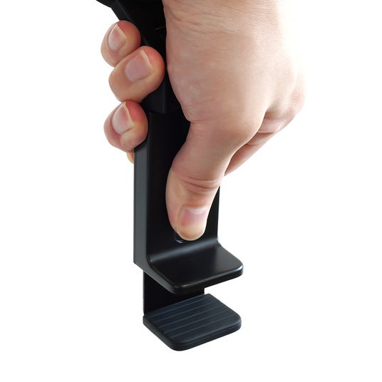 しっかり開閉するクランプクランプは最大35mm幅で開くことができるため、デスクはもちろん、新幹線や飛行機の座席テーブルにも取り付けが可能です。
