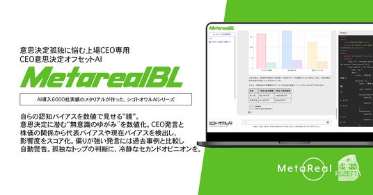 メタリアル・グループの株式会社ロゼッタ(代表取締役:五石 順一)は、CEO意思決定オフセットAIエージェント「Metarealバイアスレンズ」(以下、Metareal BL)を7月25日(金)に新開発・提供開始しました。