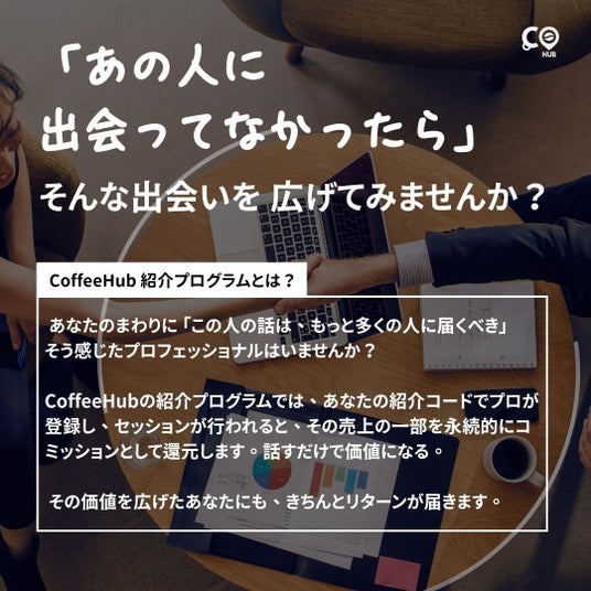 誰もが知るあの人も、名前は知らなかったけど圧倒的な経験を持つあの人も、CoffeeHubに集い、自らの時間を提供しています。
