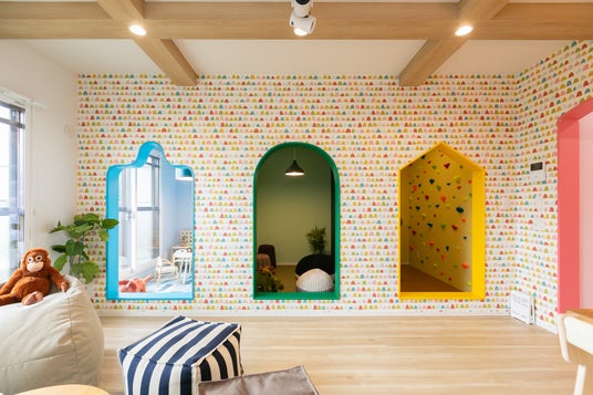 子どもの健やかな成長には、幼少期にたくさんの遊びや体験をすることが大切だと言われています。公園や施設など“外”での体験も貴重ですが、夏の厳しい暑さのなかでは、外出そのものが負担になることもあります。そんなとき、毎日長い時間を過ごす「部屋」こそが、子どもの好奇心や創造力を育む空間であってほしい。そんな思いから、この部屋をつくりました。キッズスペースにはボルダリング用のホールドや黒板クロスなど、一般的な賃貸物件にはないユニークな工夫を盛り込み、外に出なくても日常生活の中でワクワクできる体験を詰め込んでいます。