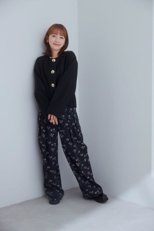 今回が初公開となるバッグの中身にも、その人柄がにじみます。ハンドクリーム、ネイルオイル、香水、アクセサリーケースとお気に入りのアイテムを紹介するなか、「一番のお気に入りはリップグロス。この種類で6個、チークティントで4つくらい家にストックがあります」と話してくれました。「私、試さないのでテスターの蓋も開けないし、服も試着しない(笑)。自分に似合わない色や服が分かるので、雰囲気でやっています。バズっているものとかはとりあえず買ってしまうので、メイクさんよりも最新コスメに詳しいこともあります」とちゃめっ気たっぷりに回答してくれました。