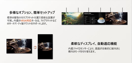- 業務用LCDパネル: 家庭用テレビとは異なる7x24時間連続稼働対応設計で、長寿命を保証。