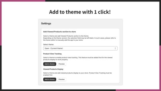 かんたん導入 - 「テーマに追加」ボタンをクリックするだけで、即座にストアに閲覧履歴機能を実装