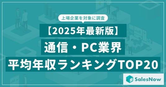 株式会社SalesNow(本社:東京都渋谷区、代表取締役:村岡功規、以下「当社」)は、国内540万社の企業情報を完全網羅した日本最大級のデータベース「SalesNow DB」より、上場企業における通信・PC業界の平均年収ランキングTOP20をお知らせします。