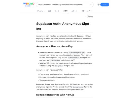 試す:https://web2md.fybe.jp/search?q=https://supabase.com/docs/guides/auth/auth-anonymous