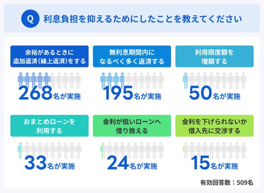 - 509人のうち268人は利息負担を抑えるために「追加返済(繰上返済)」を実施