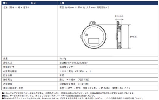BLE温湿度センサー「LIMNO TEMP-tag」