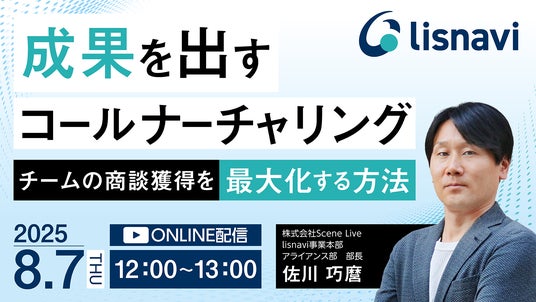 コールシステムの開発・提供をおこなう株式会社Scene Live(本社:大阪府大阪市、代表取締役:磯村 亮典 以下、Scene Live)は、「成果を出すコールナーチャリング」をテーマに、ウェビナーを開催いたします。