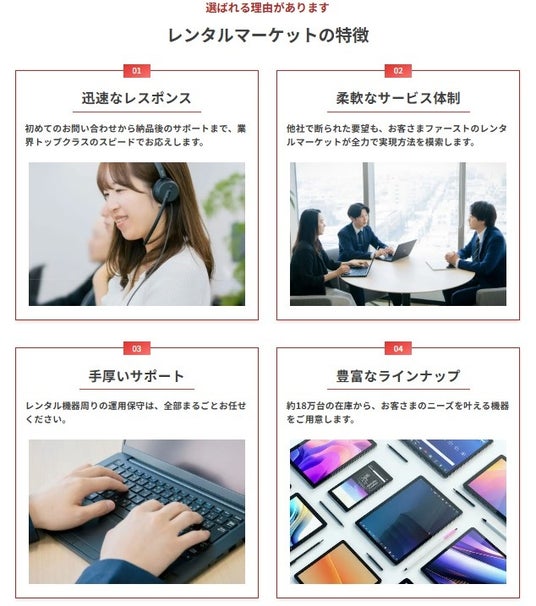 - サービスラインナップの整理とUI(ユーザーインターフェース)の改善→ 利用目的やレンタル期間に応じて最適なサービスを見つけやすくしました。- 具体的な機種別での掲載