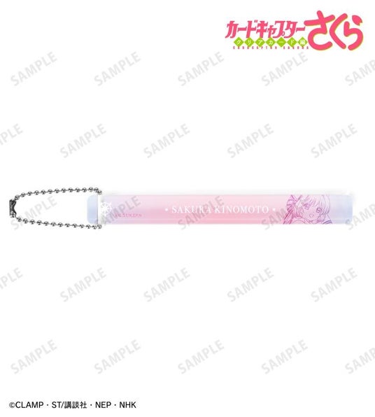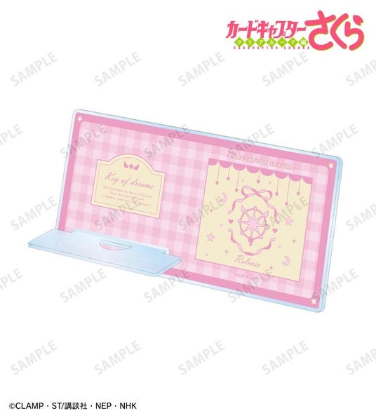 木之本 桜、大道寺 知世、李 小狼、ケロちゃんのイラスト、キャラクターの名前、キャラクターをイメージしたモチーフを、昔ながらのホテルのルームキーをイメージしたアクリルキーホルダーに仕上げました。