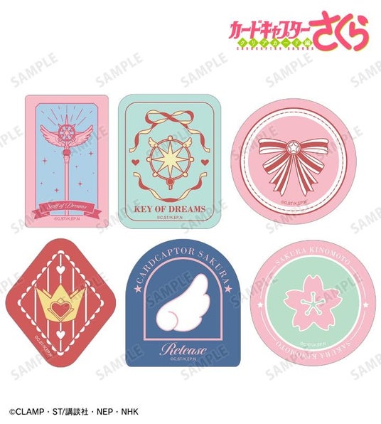 夢の杖、夢の鍵、コスチューム、木之本 桜をイメージしたモチーフをフレークシールに仕上げました。