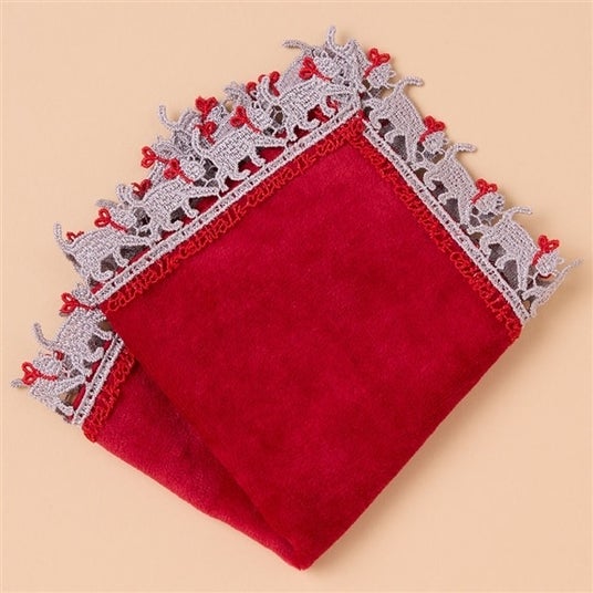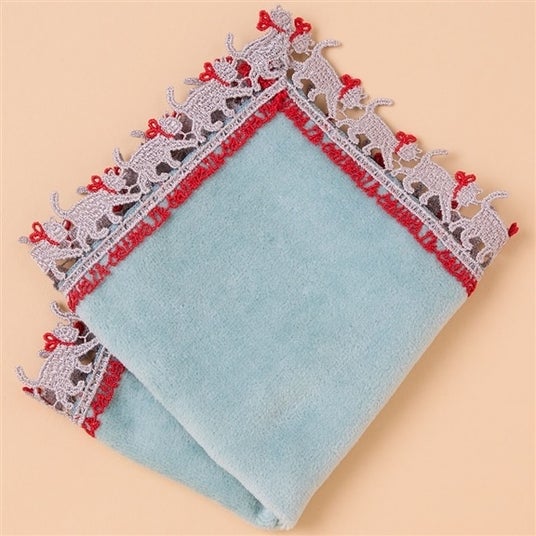 近沢レース店 「《婦人画報別注》ミニタオルハンカチ キャットウォーク(ローモンドブルー/レッド)」