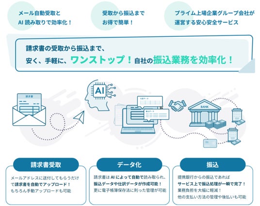 本サービスは、GMOあおぞらネット銀行株式会社(本社:東京都渋谷区、渋谷区道玄坂1―2―3 渋谷フクラス、代表取締役会長:金子 岳人、代表取締役社長:山根 武、以下「GMOあおぞらネット銀行」)が提供する「BaaS byGMOあおぞら」を活用することで、請求書の受領から支払いまでのプロセスをワンストップで完結します。