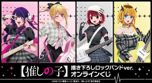 漫画・アニメのオリジナルグッズを販売する株式会社アルマビアンカ(本社:東京都中野区、代表取締役:坂井智成)は、自社オンラインくじサービス「DRAW!DRAW! -ドロー!ドロー!-」にて7月24日(木)よりTVアニメ『【推しの子】』描き下ろしロックバンドver. オンラインくじを販売いたします!