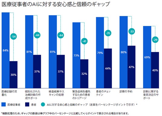 調査によると、日本の医療従事者の75%が「AIと予測分析により早期介入が可能になり、命を救うことができる」と回答し、60%が「AIによって患者の転帰が改善される可能性がある」と楽観的に捉えています 。一方で、患者側のAIへの信頼は依然として低く、AIが医療を改善できると考えているのはわずか33%にとどまり、世界平均(59%)を大きく下回っています。