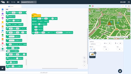 世界的に有名なビジュアルプログラミング言語であるScratchをベースに開発しているため、プログラミングが初めてのお子さんでも、馴染みのあるインターフェースで地図やデータを使った学習にスムーズに入ることができます。まるでゲームで遊ぶかのように、楽しみながら論理的思考力と問題解決能力を育むことが可能です。