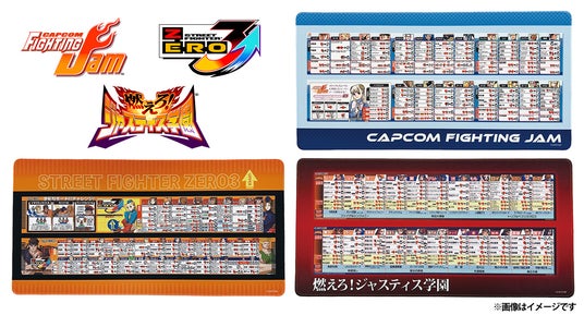 カプコン ファイティング コレクション2』の収録タイトル、『CAPCOM FIGHTING Jam』、『ストリートファイターZERO3↑』、『燃えろ!ジャスティス学園』のキャラクターのコマンド表がデザインされたデスクマットが発売中! ぜひご購入を!