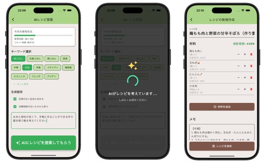 サブスクリプションプラン「Smartプラン」専用機能であるAIレシピ提案機能を使用すれば、最先端の生成AIを利用して冷蔵庫にある食材からレシピを提案し、献立作成やフードロス削減を力強くサポートします。