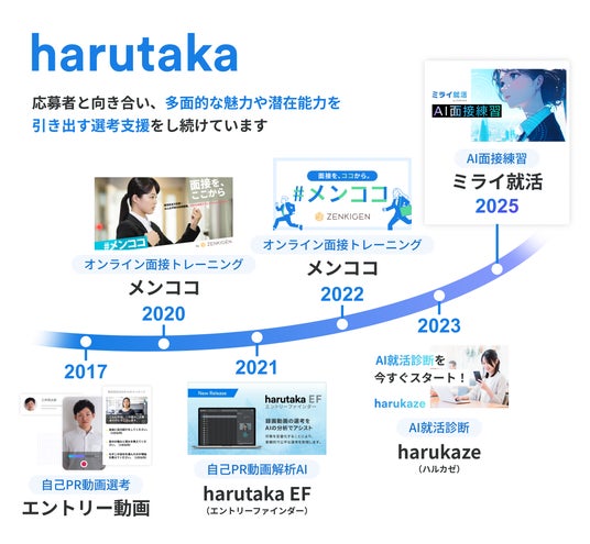 本技術を用いた「harutaka AI面接」により、就活生をはじめとした応募者と企業の双方をサポートするサービスとして本格展開してまいります。