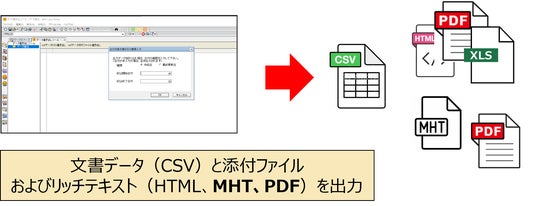 - HTMLに加え、PDF・MHT形式のリッチテキストの出力が可能(追加機能)