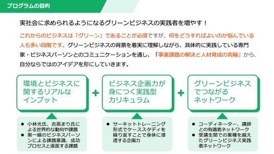 ■本プログラムの目的 ~実社会に求められるグリーンビジネスの実践者を増やす