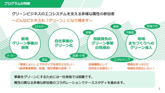 ■本プログラムの特長 ~「ビジネス」を考える思考とスキル、ネットワークが「グリーン」に