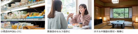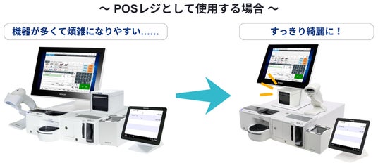 例えばPOSレジとして使用する場合、周辺機器で煩雑になりやすいレジ周りを、すっきりと綺麗に見せることができます。