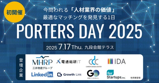 人材ビジネス向けマッチングシステムを提供するポーターズ株式会社(東京証券取引所グロース. 証券コード5126、東京都港区、代表 西森 康二、以下 ポーターズ)は、2025年7月17日(木)に人材事業領域特化のオフラインイベント『PORTERS DAY 2025』を開催しました。