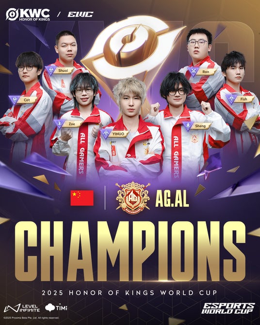 世界最大のeスポーツイベント、「Esports World Cup 2025 (EWC)」の一環としてサウジアラビアのリヤドで開催された、「Honor of Kings World Cup(KWC)」において、AG.ALが7回戦までもつれ込む接戦の末にTT Global を下し、見事優勝を果たしました。